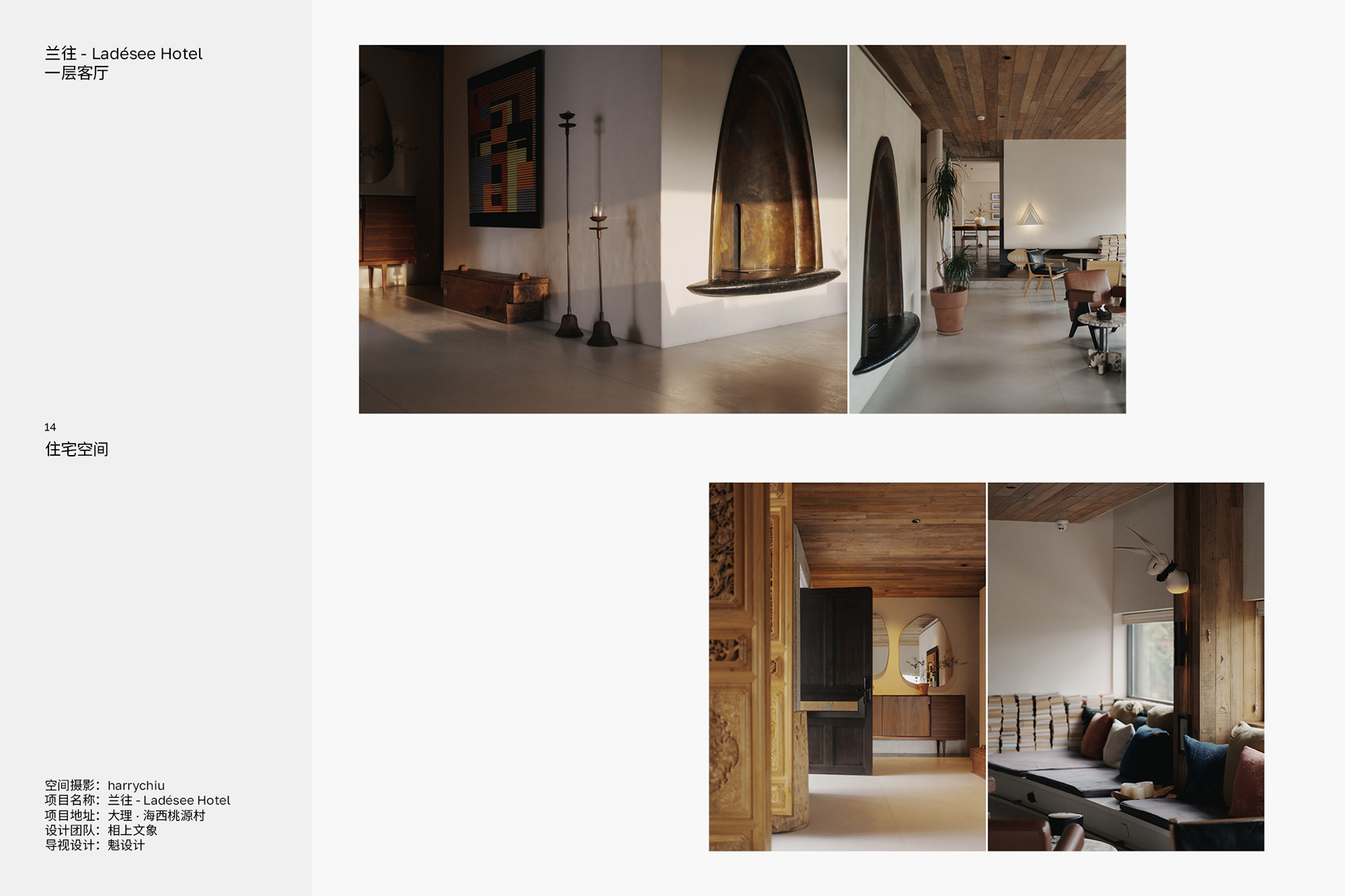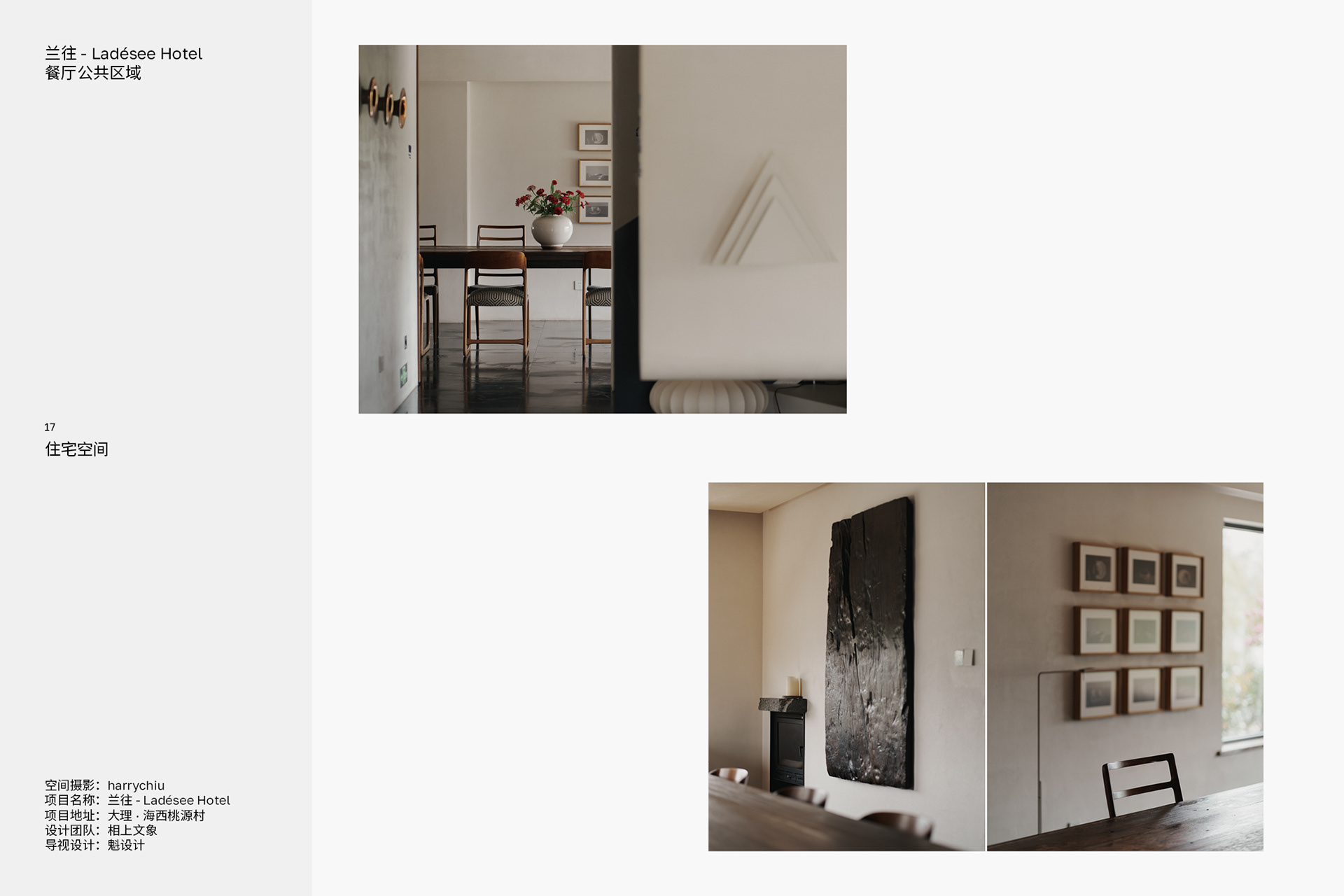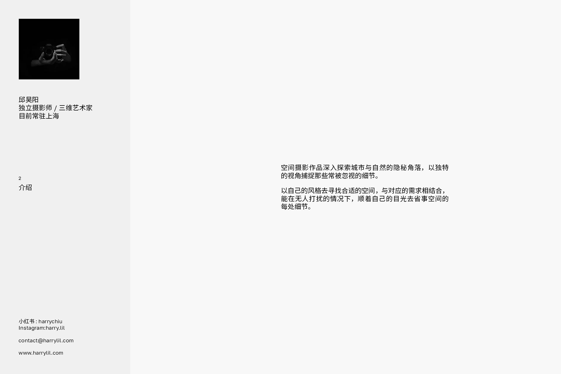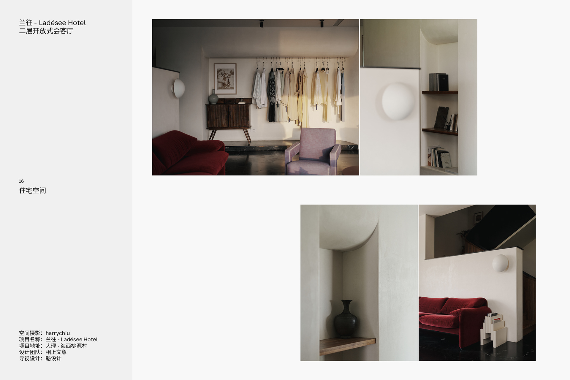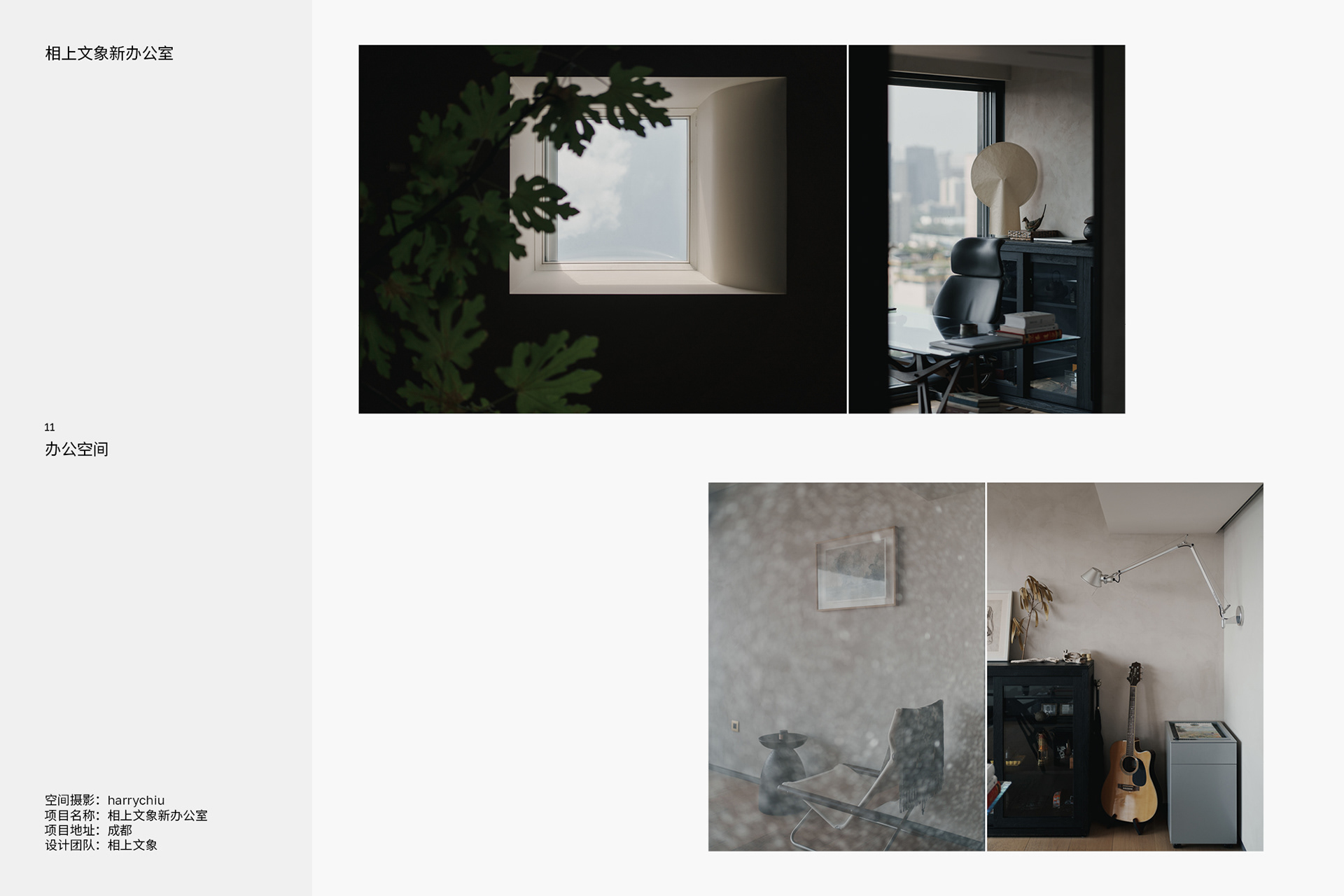 “空间摄影探寻那些不同的角落,每个人不同的目光总会有新的发现以及新的体验,试着分享这种体验和发现。” "Interior photography explores those different corners. Everyone's different gaze always leads to new discoveries and experiences. Try to share these experiences and discoveries."